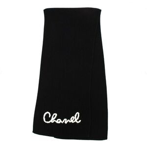 Chanel NWT 100% Cashmere Black Stole Scarf. Hand Embroidered White Pear Logo