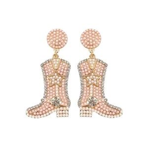 Cowgirl Boot Earring Pearl Rhinestone Shoes Dangle Earrings Nashville and Weste