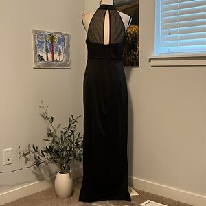 NWT SHEIN Belle sexy black maxi has a banded halter neck. Has sheer black tulle above bust, then sweetheart cut below. The bust is padded at interior or so can be worn withou a bra if desired. Skirt has straight silhouette and is split at R front for an extra touch of sass! Has button and tab closure at back neck, with opening