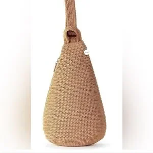 The Sak Geo Sling woven bag in Tan.