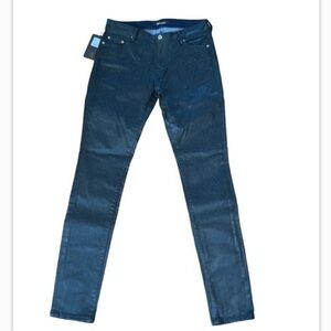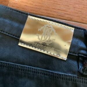 Gorgeous NWT Roberto Cavalli black coated skinny jeans with subtle leopard print throughout. Size 42, in Italian, which equates to a US medium or size 6. Please refer to pics for approx measurements to ensure proper fit.