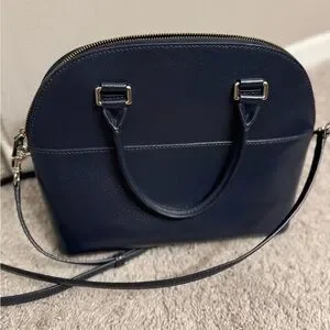 NWOT - Navy Blue, leather purse. Lots of room.Outside pocket and adjustable straps 9.4”H x 12”W