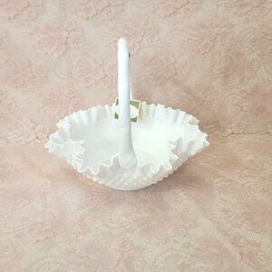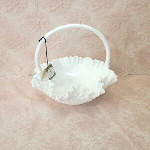 Fenton Hobnail Milk Glass Basket in Original Box with Tag