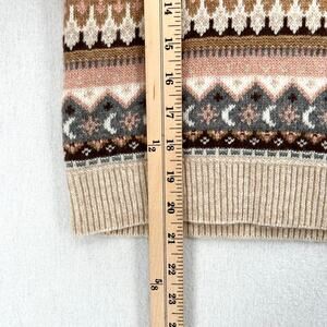 J CREW Fair Isle Cropped Crewneck Sweater Womens XS Cream Gray Brown Wool Blend