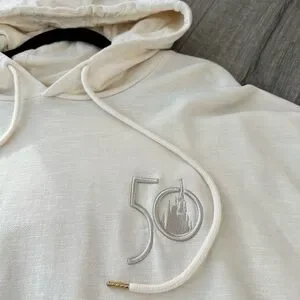 RARE Walt Disney World 50th Anniversary Hoodie. Beautiful cream colored, cozy pullover hoodie in like new condition. Worn once for an hour. This piece comes from their Luxe collection, celebrating their 50th anniversary. Features the iconic Cinderella castle design, drawstrings in the hoodie, front pocket, dolman sleeves, loose fit and quality craftsmanship. In excellent condition, no damages, no stains. Perfect collectors item!