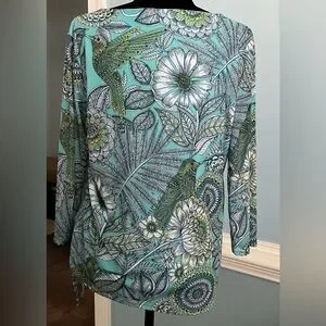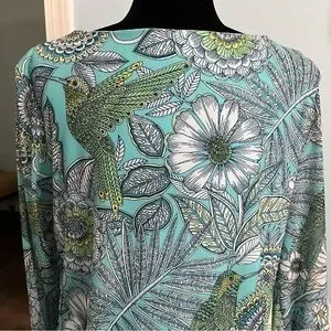 Teal Top NWOT Hummingbird Blouse Spring Floral TunicTop Floral Bird Top