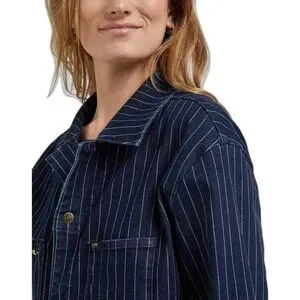 Denim coveralls with pastel rainbow stripes. Never worn. Women’s L size, would fit up to 32” inseam.