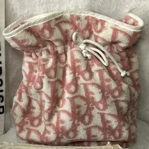 Dior cute pink and cream terry large drawstring bucket bag with pouch