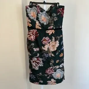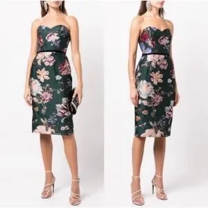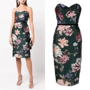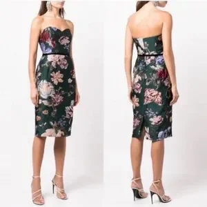 Marchesa Notte Strapless Floral Midi Dress size 12