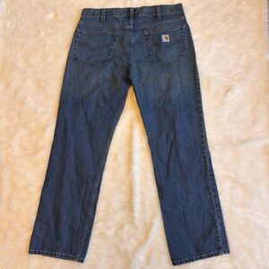 These Carhartt Relaxed Straight Fit Medium Wash Blue Denim Jeans are in great condition with no rips, tears, or stains.