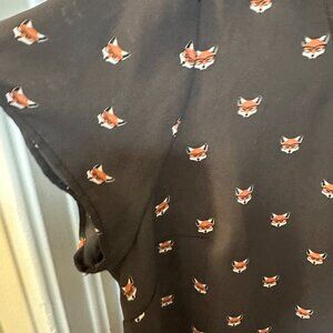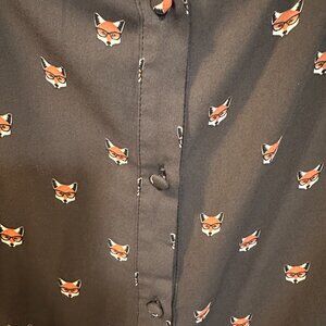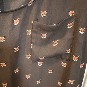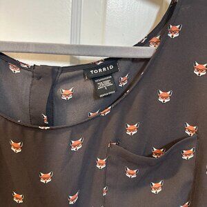 Torrid Gray Short Sleeved Blouse w/ Fox Print and Button Up Back-Size 1