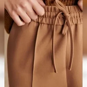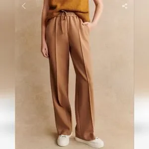 Beautiful camel color, high waist trousers, elastic waist with drawstring. Straight wide Leg. Superb quality fabric. Size FR40 US 8