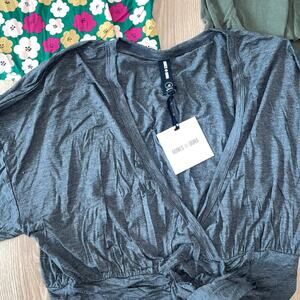 Agnes and Dora Grey Bell Sleeve Wrap Top NWT XL