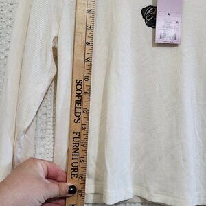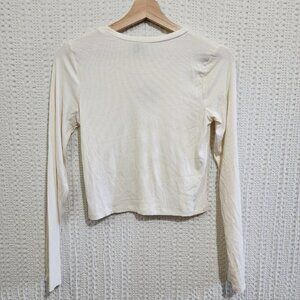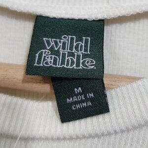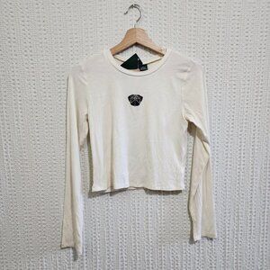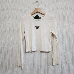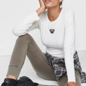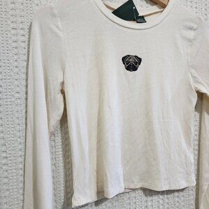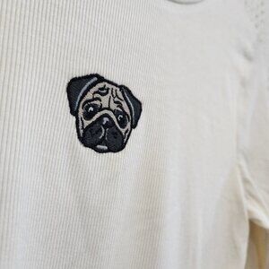Wild Fable Pug Dog Ribbed Embroidered White Long Sleeve Crop Top Size Medium