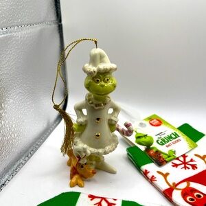 The figurine of the Grinch is about 4” tall and was hand crafted in Thailand. The socks are NWT and are NWT. Sized OS