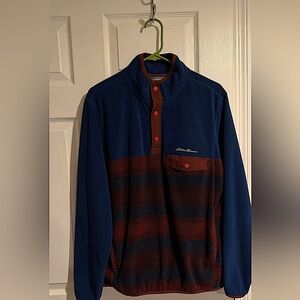 Eddie Bauer Men’s Medium Blue and Red Fleece With Pockets