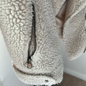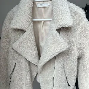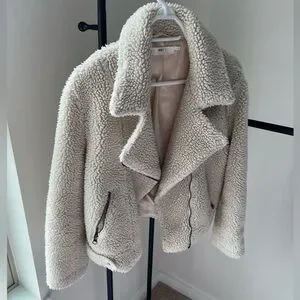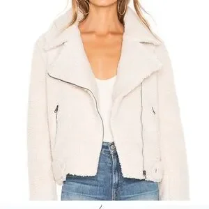 ASTR the Label Brooklyn Faux Fur Moto Jacket in Ivory Size Small Pre-Loved