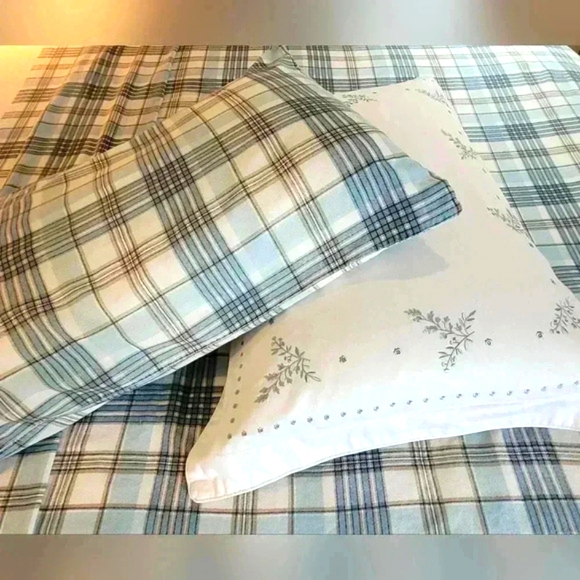 100% cozy cotton flannel top sheet and matching case, paired with a coordinating accent embroidered case, also 100% cotton.