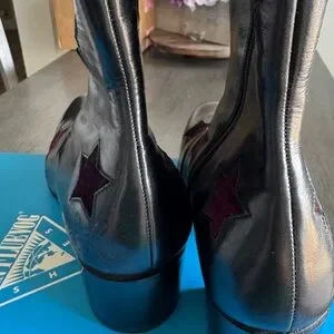 John Fluevog size 5.5 black booties with purple stars