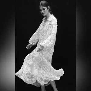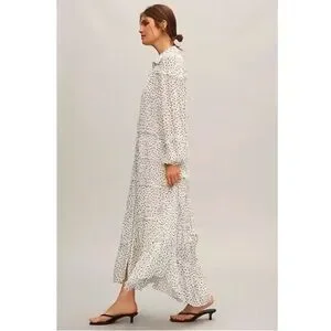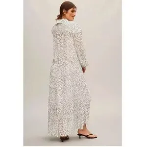 Anthropologie Long-Sleeve Smocked Tiered Maxi Dress S polka dot