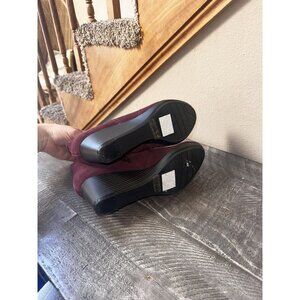Clarks Boots Womens 8 Wide Ankle Burgundy Wedge Heel Suede Zip Up Casual Boho