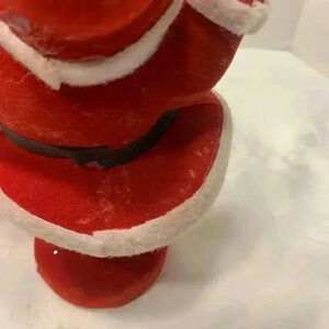 Nice pair of Vintage Dancing Waving Flocked Santa Claus. Nice condition a couple of spots flocking is missing all showed him pictures