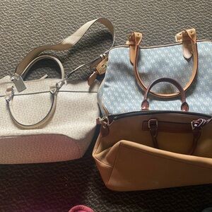 Light blue Dooney and Burke purse, dark tan Dooney and Burke purse and an off white/tan Guess purse all in great condition, barely used.