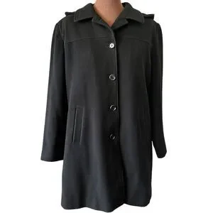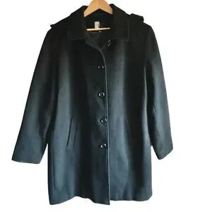 Gallery Wm’s XL Black Winter Coat 80% Wool Single Breast Detachable Hood