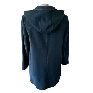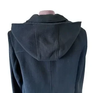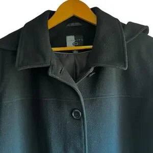 Gallery Wms XL Black Winter Coat 80% Wool Detachable Hood Classic Wardrobe Staple