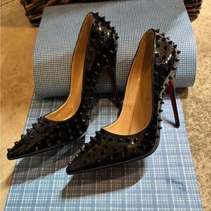 These shoes are in great condition! They look completely unworn! Some damage to box and little scuff on bottom of shoe shown in picture! Otherwise a great purchase the ultimate shoe collectors! No scuffs heel is in greatt condition! Awesomew shoes 👠
