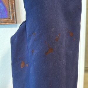 pen ink stains on back. won’t show if you have a jacket on. priced accordingly