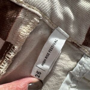 PACSUN Eco Flower Checkerboard High Waisted Denim Festival Shorts Size 26