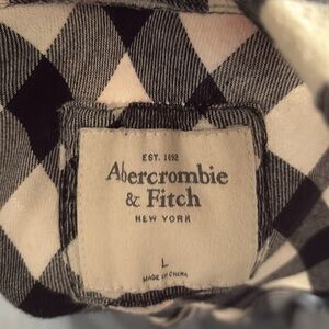 Stylish black and white plaid shirt. Features button-up front and chest pockets. Perfect for casual wear.