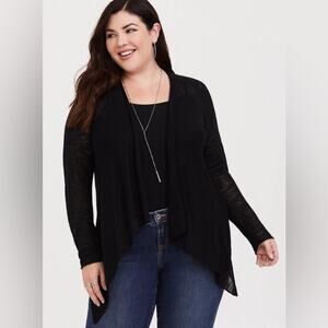 Slub Cardigan Drape Front Sweater (stock photo at end shows in black so you can see style but it is pink magenta) Gently used, pre-loved condition.