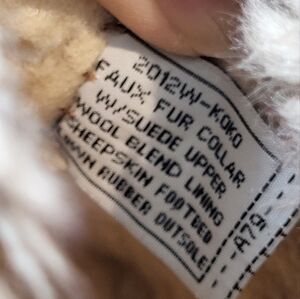 These 5 inch cozy booties will find their way onto your feet. For added design, faux rabbit collar and double buckle strap.