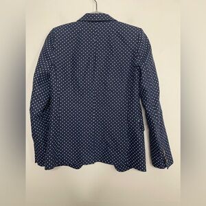 J. Crew Pure Linen Regent Career Blazer in Navy Polka Dots Office Business Sz 00