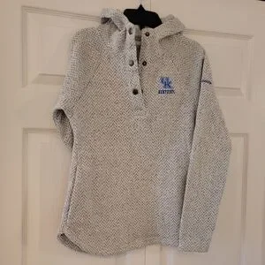 University of Kentucky Pullover with a hood by Columbia. Has working snaps and side pockets. like new. warm fleece interior. size XS