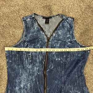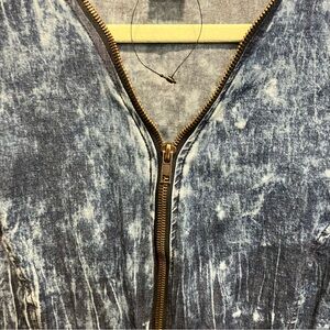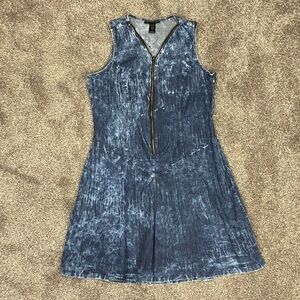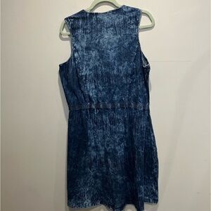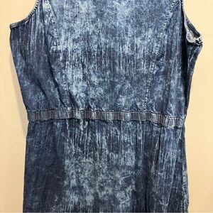Ashley Stewart denim looking acid splash dress with front long zipper, new without tags, elastic waist, size 20.