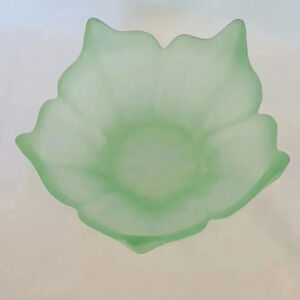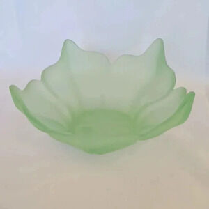 Viking art glass six and a half inch lotus blossom bowl by Wayne Houston. Green frosted satin finish, no chips or cracks. Beautiful condition.