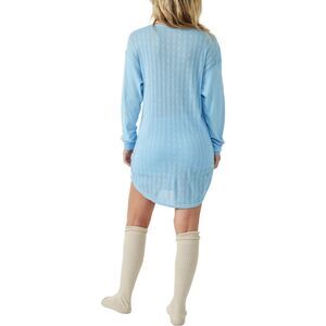 Free People Weekend Vibe Pajama Top Long Sleeve Button Neck Chambray Size Small