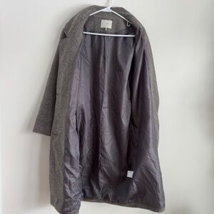 OAK + FORT Wool Blend Oversized Trench Coat - Grey Herringbone