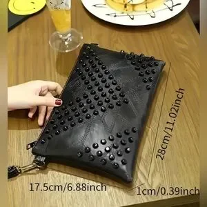 Casual Rivet Grid Crossbody, Shoulder Bag, with Lightweight Adjustable Strap