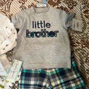 All NWT baby boy clothes. Two onesies, a sleeper, a shorts and T-shirt set, and a dressy set with shirt and red pants.