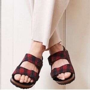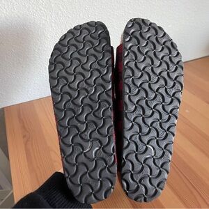 Birkenstock Arizona Plaid Red Fur Shearling Sandal