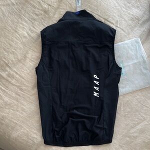 Stylish black cycling vest by MAAP. Sleeveless design. Perfect for outdoor activities.