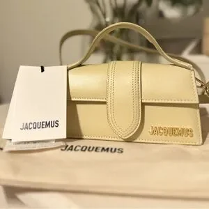 Highlighted with polished logo lettering, the Le Bambino bag by Jacquemus is designed in a structured rectangular silhouette with an envelope flap. This Italian-made piece is crafted of rich leather. Used like new with tags. Accepting messages for negotiation 💛