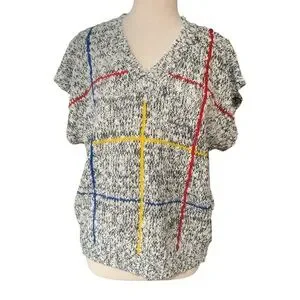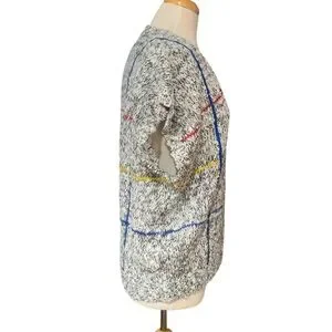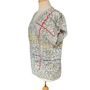Vintage 90’s short sleeved sweater heathered grey with primary stripes size XL