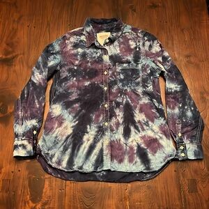 Tie-Dye Denim Shirt Women Size Large