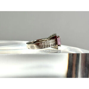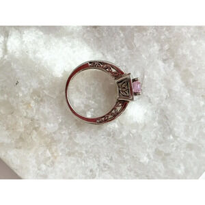 Pink Spinel Emerald Cut CZ Lined Double Shank Vintage Sterling Silver Ring sz 5