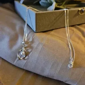 17 inch 95 Sterling silver. Great pearl pendant necklace snake chain. Great for parties every day, even gifts.(121)